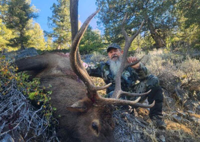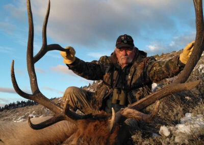Due to the nature of our country, scouting from glass points helps produce good bulls. As the rut slows down larger bands of elk merge bringing bulls together. This is a real advantage; it allows us to pick the cream of the crop! Marksmanship is very important for our rifle hunts, as shots can extend out to 300+ yards.