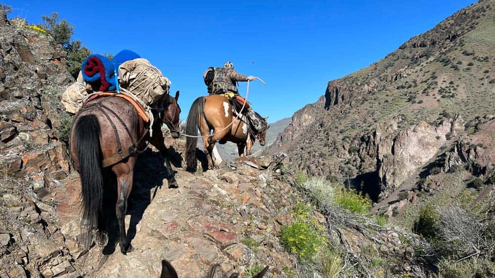 Our terrain can be very steep, rocky and rugged! We hunt everywhere from 5000-9000ft elevation. The Salmon River corridor around Salmon is more of an arid environment compared to other parts of the state. The habitat for our elk hunts consists of thick Douglas fir/lodgepole pine forests with sage/grass slopes and meadows. Horses make a huge difference on our hunts!