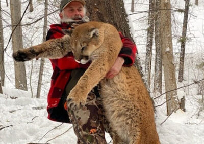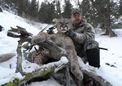 Lion hunting in Idaho is a great experience! Hound hunting is our passion! Our outfitted hunting area is very large, stretching from Salmon to Challis, Idaho. A large portion of our hunting areas backs up to the Frank Church Wilderness, which produces Boone and Crockett lions every year. We have GPS tracking equipment for our already well trained hounds. You can choose any weapon you would like for our lion hunts; typically hunters will use archery equipment or short range firearms.