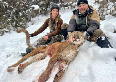 We hunt one hunter per 8 day lion hunt. We have a set number of hounds to chase the lions and like to keep some dogs fresh for later in the hunts. In order to maintain quality of the hunts and odds of treeing a lion we stick to one hunter each week. Non-hunter guests are allowed and encouraged to share your hunt with! We do at times make exceptions to this and hunt two hunters at a time.